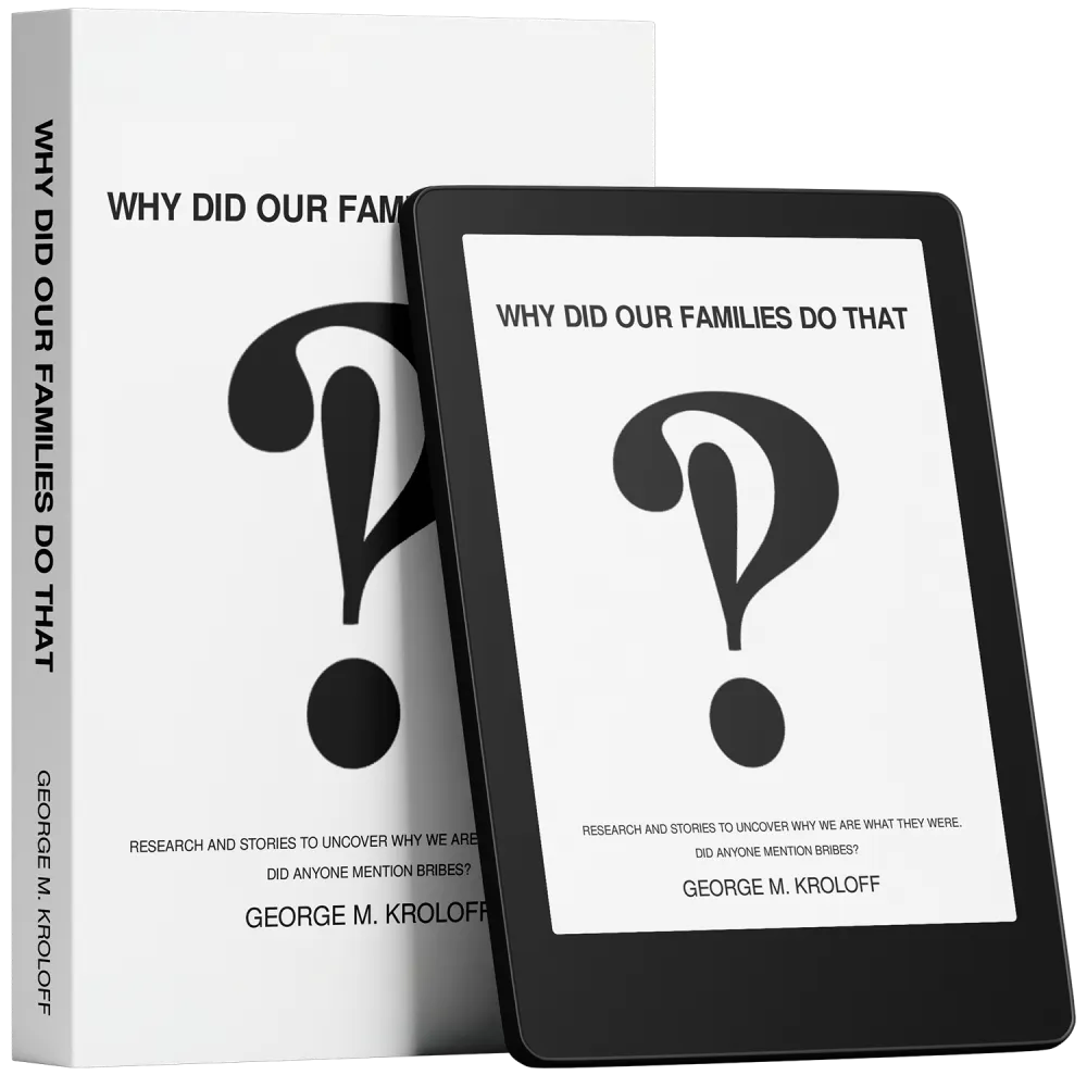 WHY Did Our Families Do That by George Kroloff explores the question most family histories never answer: why our ancestors made the choices they did, and how those choices still shape us today. Instead of recreating ancestors’ lives, the book documents the forces that affected them and continues to influence later generations. It brings together stories, reminiscences, and historical context that rarely make it into family conversations, even though they explain far more than names and dates ever could.